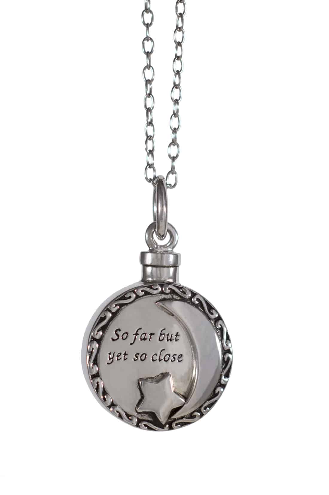 “So far but yet so close”, a hope filled statement, this pendant encapsulates the feeling of keeping a loved one close. This pendant serves as a reminder of a lost loved one.