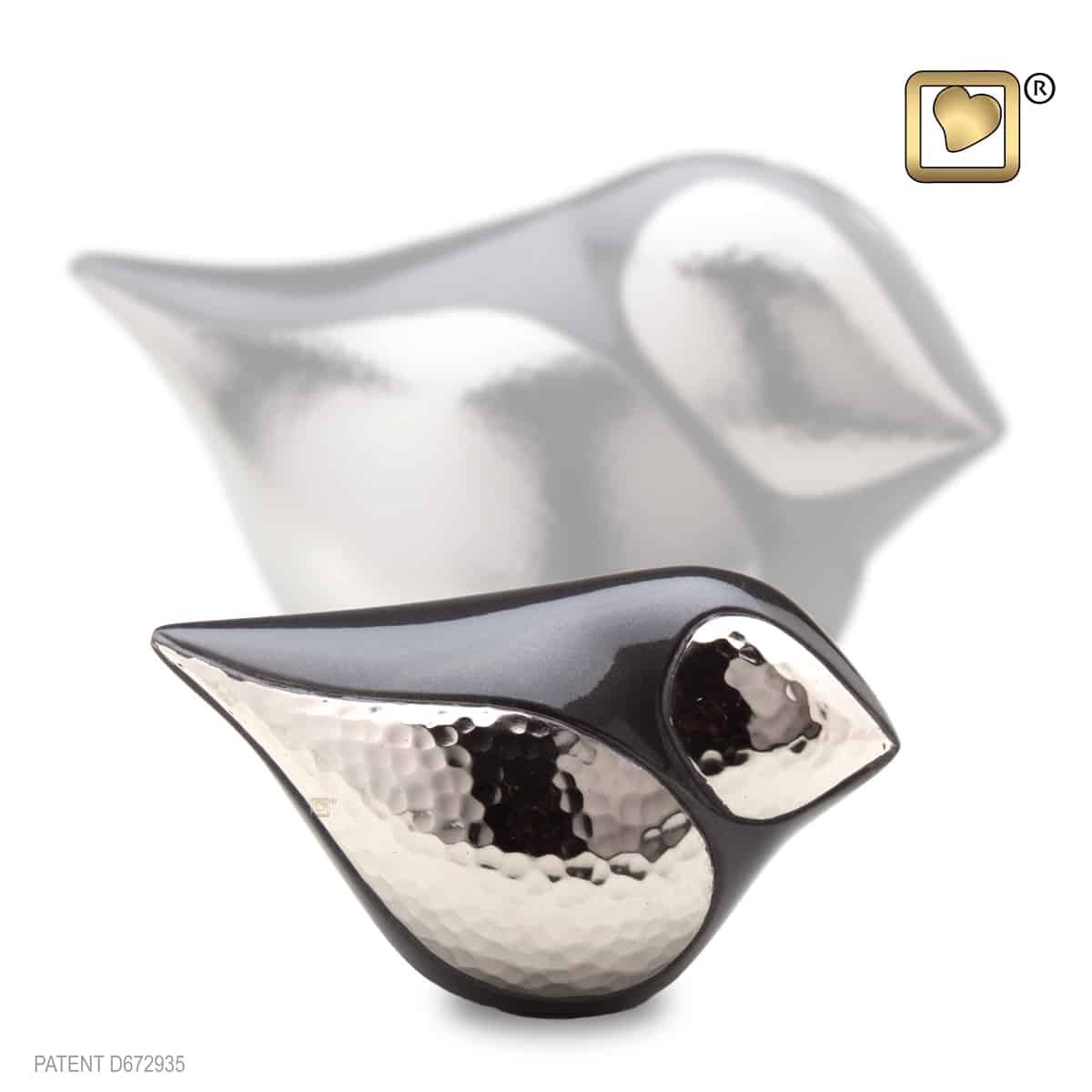 The Soul Bird FemalecKeepsake Urn is a small urn styled in the shape of a bird. Finished in a shiny and reflective polished silver, this keepsake urn is an eye-catching tribute to your loved one.